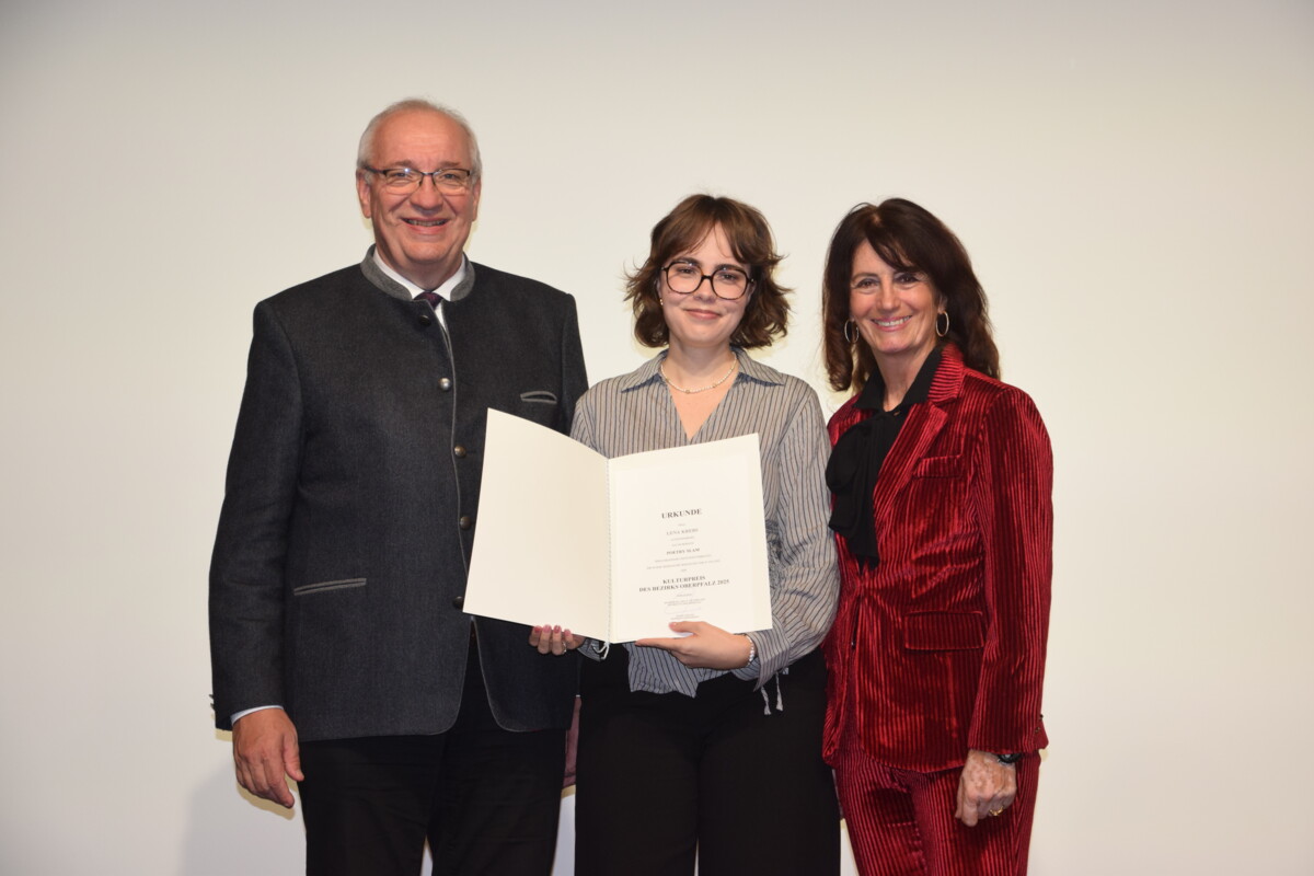 Den Preis im Bereich „Poetry Slam“ hat Lena Krebs aus Regensburg abgeräumt. Es war schnell klar, dass sie auf die Bühne muss. Und 2015 war der Moment gekommen, der zeigte: Die junge Frau will mehr als nur lesen oder schreiben, sie will auch sprechen, berühren und bewegen. Laudatorin und Kulturreferentin Kerstin Radler würdigte die Slam-Poetin für ihr dichterisches Schaffen, ihre kreative Originalität, ihre starke Bühnenpräsenz und ihr unermüdliches Engagement für Sprache und Gesellschaft.
